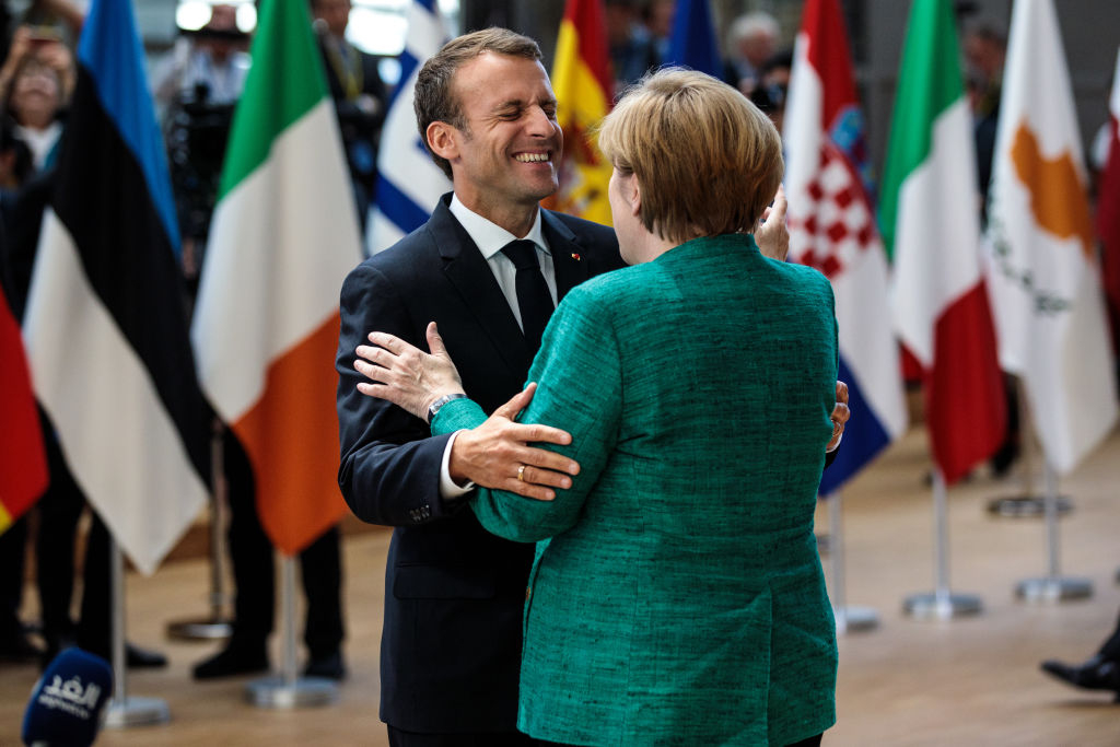 French President Emmanuel Macron's recent dismissal of nationalism as "selfish" and a "betrayal of patriotism" is at odds with strengthening populist movements sweeping across Italy, Germany and Spain. Pictured: Macron shares a laugh with German Chancellor Angela Merkel at the European Council leaders' summit on June 28, 2018 in Brussels, Belgium. (Photo by Jack Taylor/Getty Images)