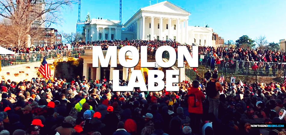 Molon Labe', and wondered what it meant, and wondered even more why you see a lot of American patriots using that expression. Molon Labe comes from the Greek and it means literally 'come and take it', and is a classic expression of defiance. Tens of thousands of American patriots are in Virginia right now to defend the Second Amendment of the United States Constitution against a democratic governor who is looking to take it away for the residents of that state.