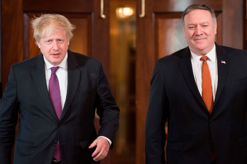 British Prime Minister Boris Johnson would be well-advised to heed US Secretary of State Mike Pompeo's advice and reconsider allowing Huawei access to Britain's telecoms systems, irrespective of the restrictions the British authorities claim they will impose on the firm's access to sensitive installations. Pictured: Johnson (left) and Pompeo on May 7, 2018, in Washington, DC. (Photo by Jim Watson/AFP via Getty Images)
