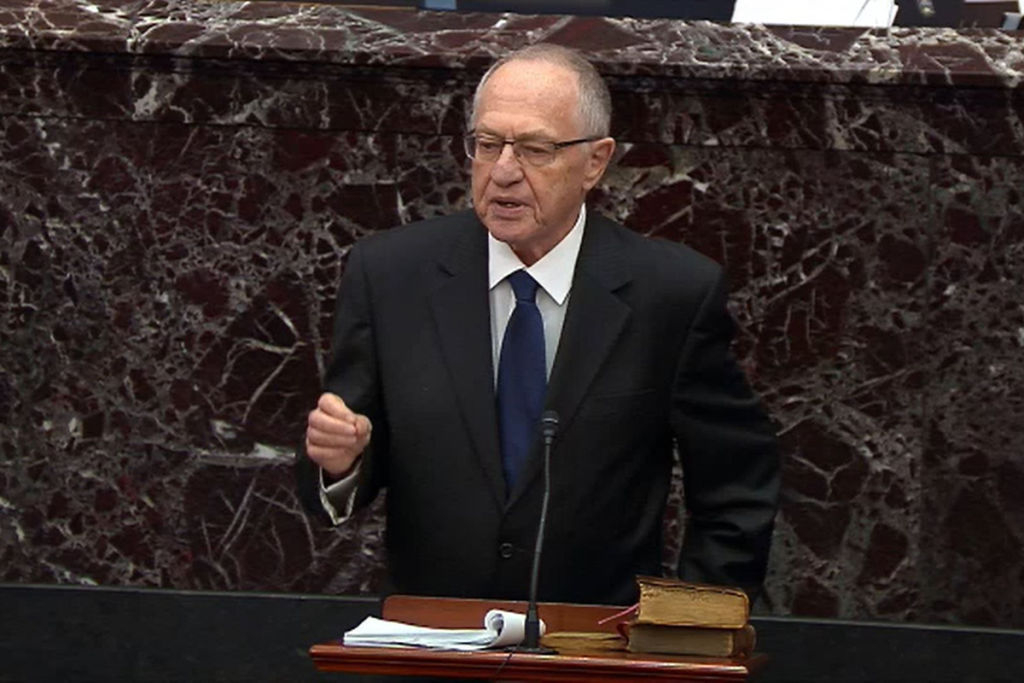 Pictured: Alan Dershowitz speaks in the United States Senate during impeachment proceedings against President Donald Trump, on January 27, 2020. (Photo by Senate Television via Getty Images)
