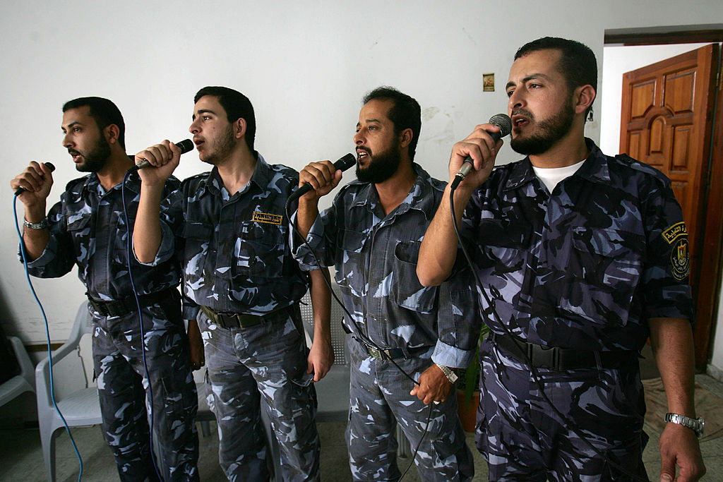 The only songs Hamas and its followers want are those that promote hate and violence.... "I will eat you alive, tastes best without salt, Zionist – Yes, yes, you." Pictured: Members of the Hamas "Protectors of the Homeland Police Band" practice in Gaza City on November 4, 2007. (Photo by Abid Katib/Getty Images)